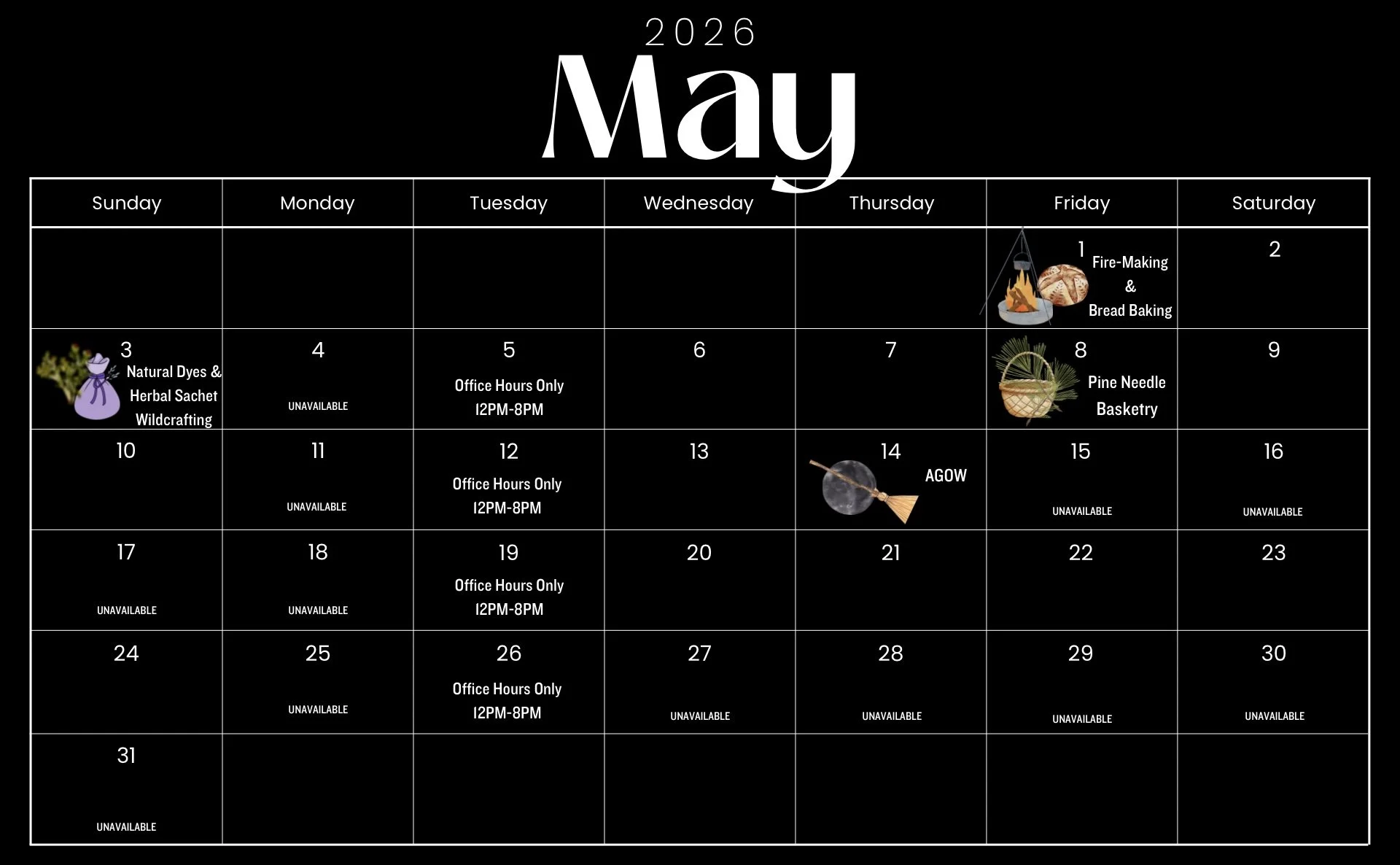 “I only see classes for a couple of months, when will you post classes for the future?” Calendars are updated around the second week of each month. Events are booked out 1-3 months in advance. If you see a lot of blank dates in the calendar above, check back in a week to see if it’s been updated. You can also add yourself to the monthly email list to get calendar updates (scroll down to add your email).